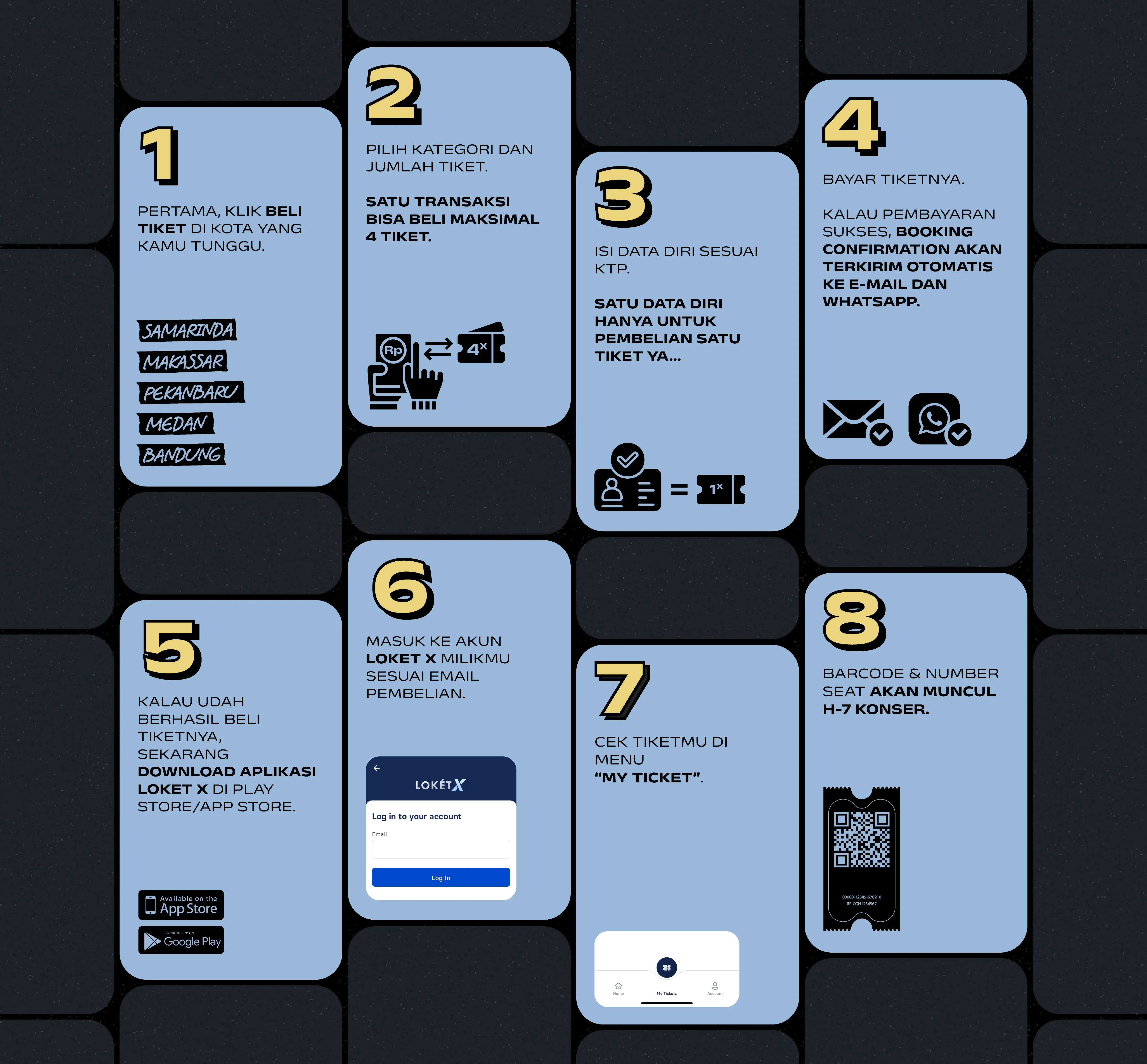 Selain pengguna Android & IOS, hubungi Customer Service Loket.com atau datang ke meja bantuan di pintu utama konser nanti, ya!